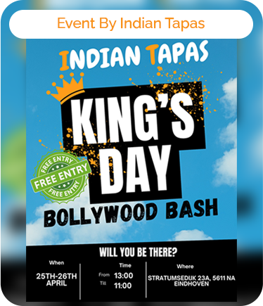 Celebrate King’s Day Bollywood-style at Indian Tapas – 2 days of desi beats, food, and vibes. Free Entry. Full Energy!